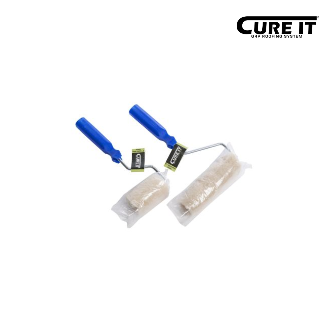 The Cure It Complete Roller includes both frame and sleeve, designed specifically for applying resin and topcoat during GRP roofing installations. Available in 3″, 6″ and 9″, these rollers provide smooth, even coverage and are built to withstand solvents and repeated use on professional roofing projects.